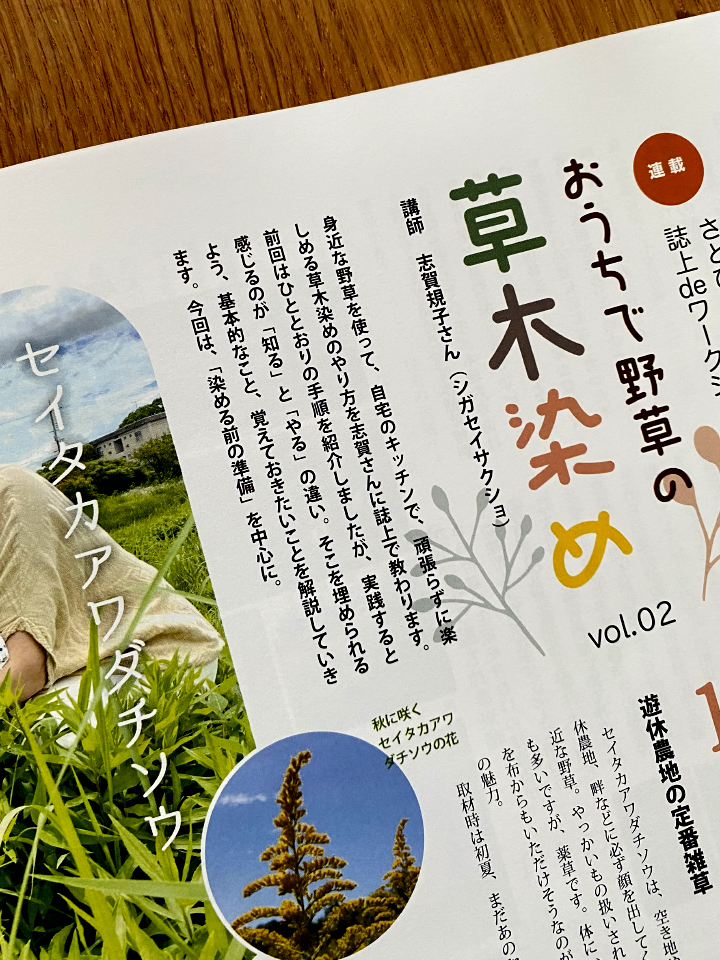おうちで野草の草木染め vol.2 「セイタカアワダチソウ」講師 志賀規子さん 染めている間、薬草らしい体によさそうな香りでいっぱいになりました。