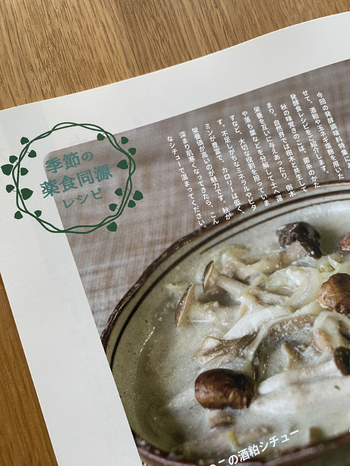 季節の薬食同源レシピ 監修 クレメンツかおりさん 特集にあわせたメニューになっています。秋が深まったら食べたいシチューを薬食同源レシピにてどうぞ。クレメンツさんのレシピブック、あります。