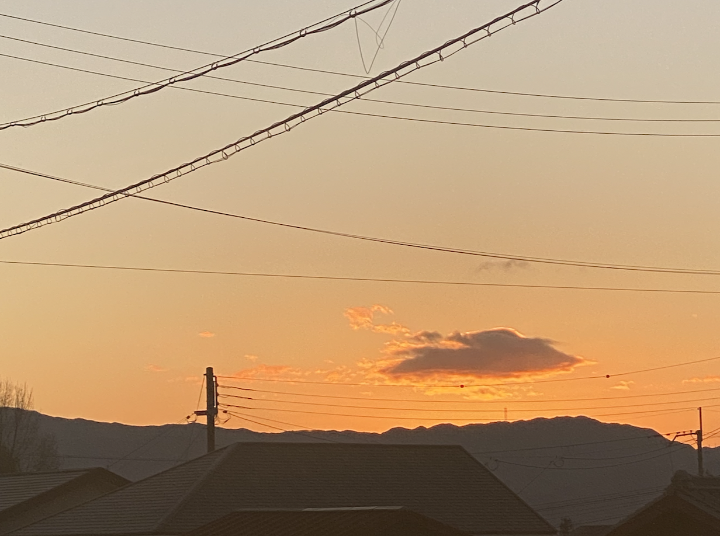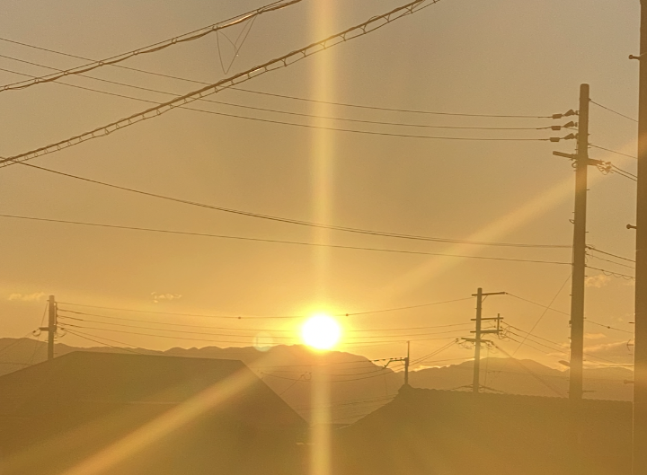 元旦の朝、「夜明けだよー」と旦那さんが声をかけてくれたおかげで、いそいそと戸外へ(昨年同様)。住宅街の向こう側から登る初日の出を拝みました。空が明るくなり、山の頂上がキラッと光ったかと思うと、秒単位で太陽が姿を現しはじめました。そして、みるみるうちに、あたりが光で包まれました。(アイキャッチ画像の太陽は年内に取材のためにとったものです。こちらのほうが光っているので使いました)