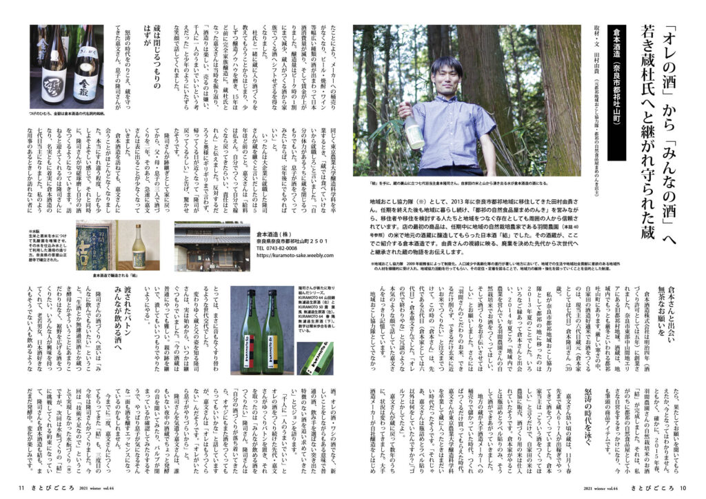 地酒で味わう奈良2の特集のときには、都祁の酒蔵「倉本酒造」さんを取材・執筆していただきました。「やるなら本気で」と、誠実な原稿を寄せてくださいました。