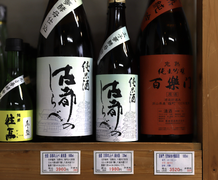 ごあいさつまわりのエピソードの中からひとつだけ。JR奈良駅の中にある「もも太朗」さんをご存知ですか。先の取材では、そのJR奈良店を訪ねたのですが、本店は、法隆寺のお膝元・斑鳩にあります。今回はこの斑鳩店にうかがいました。そこで見つけたのがこのお酒。