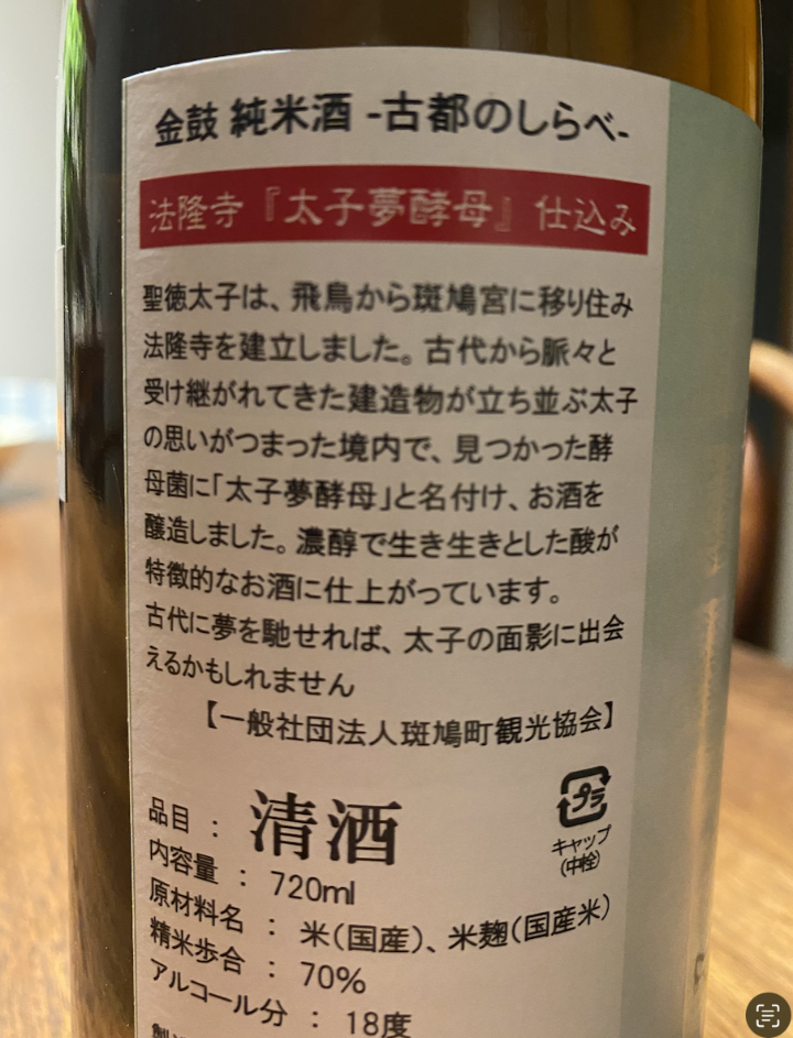 法隆寺の境内で見つかった酵母菌で醸造されたものだそうです。「金鼓 純米酒 古都のしらべ」。金鼓ということは?製造はあの!さとび読者さんならおなじみの大倉本家。ずしっと重みのある、旨みと甘みが重なった味わいでした。ともかく、おいしかった。これからしばらく、このお酒をいただきながら過ごします。