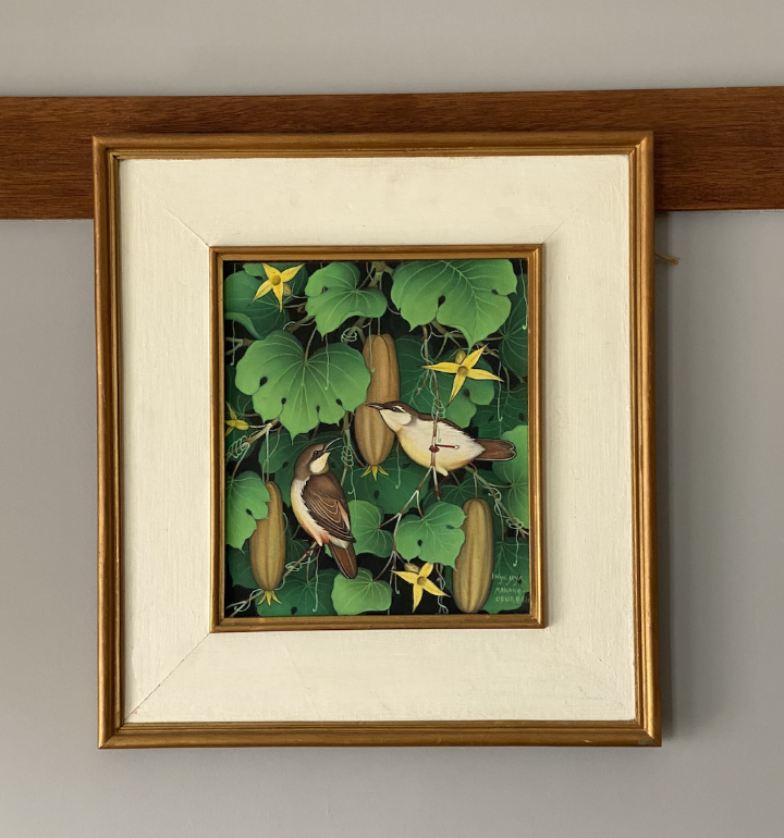もういつのことか思い出せないくらい昔、バリへ一人旅行に行ったとき買い求めた絵。額縁の向こう側に深い森があるようで、大好き。どんなに引っ越しても、いつも一緒にいます。