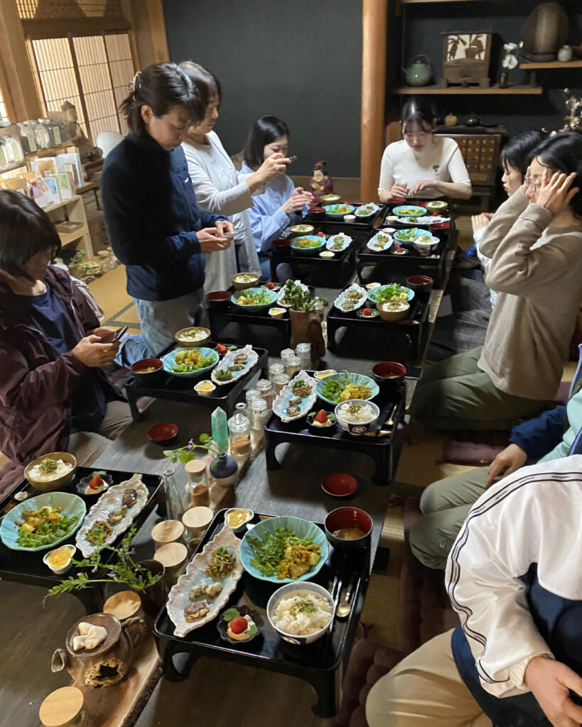 そして、料理の仕方を教わりながらランチ会。このごろの雑草キッチンは、料理教室的なものではなくなり、雑草をとして自然と調和した在り方や暮らし方を語り合う場になってきました。みなさんお一人お一人のお話を、みんなが頷きながら伺いました。